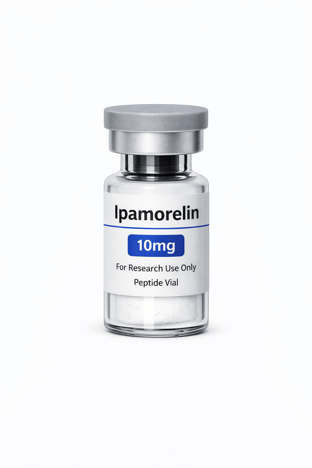 Ipamorelin 10mg — Selective GHSR-1a agonist for GH pulse research. ≥99% purity. USA synthesized. For laboratory research use only.